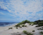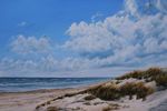 2020Olieverfschilderij van een zeegezicht met strand en wolken. Te koop en te huur bij Galerie Kunstuitleen Bollenstreek in Hillegom.