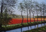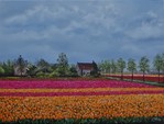 2016Olieverfschilderij van een bollenveld bij Lisse, Keukenhof.