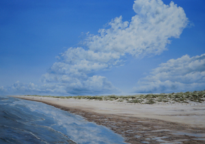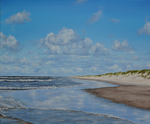 2019Olieverfschilderij van het brede strand van Ameland. Te koop en te huur bij Galerie Kunstuitleen Bollenstreek in Hillegom.