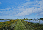 2019Olieverfschilderij van een bloeiende dijk in de zomer.