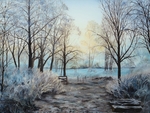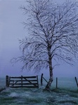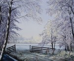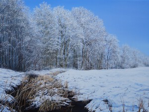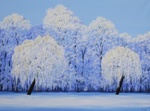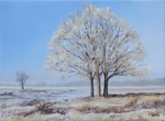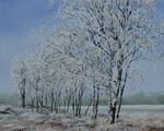 2006Olieverfschilderij van berken in weiland met rijp.