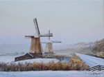 2007Olieverfschilderij van een winters landschap met molens.